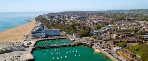 Still one of England’s busiest ports and a popular place to visit thanks to its scenic coastal setting, Folkestone became an important holiday destination in the mid-19th century after the railway from London was built. Much of the town’s distinctive architecture therefore dates from the Victorian era. It was also a key harbour and shipping port throughout the 19th and 20th centuries.
